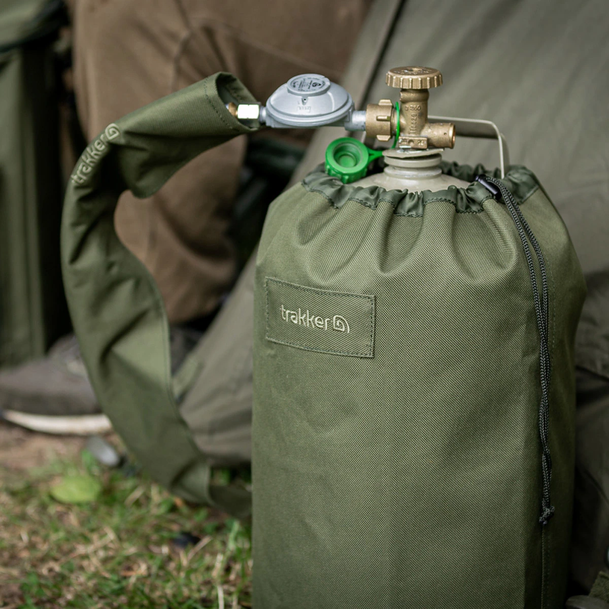 De Trakker NXG Gas Bottle and Hose Cover is gemaakt voor een gasbus met een inhoud van 5,6 kg.