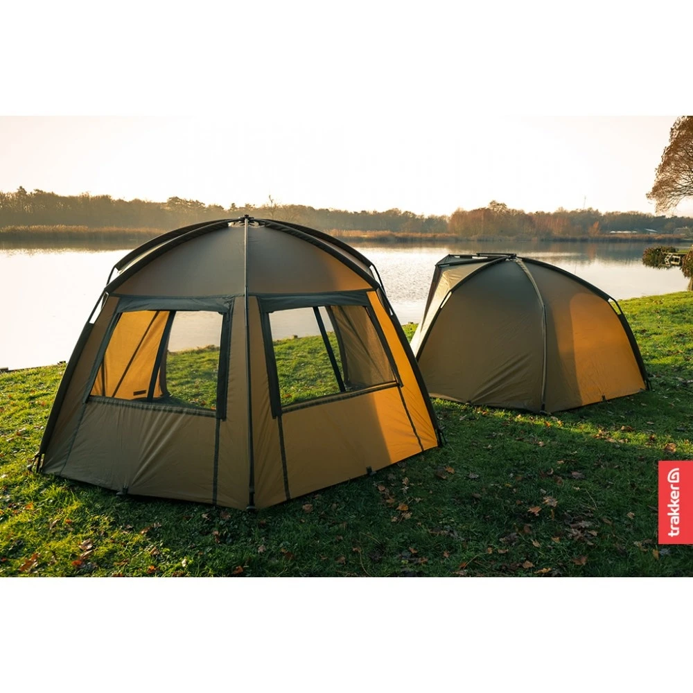 De shelter is verkrijgbaar als modulair systeem met optionele extra’s, waaronder twee verschillende infill-panelen die je aan de voorkant van de brolly kunt vastritsen.