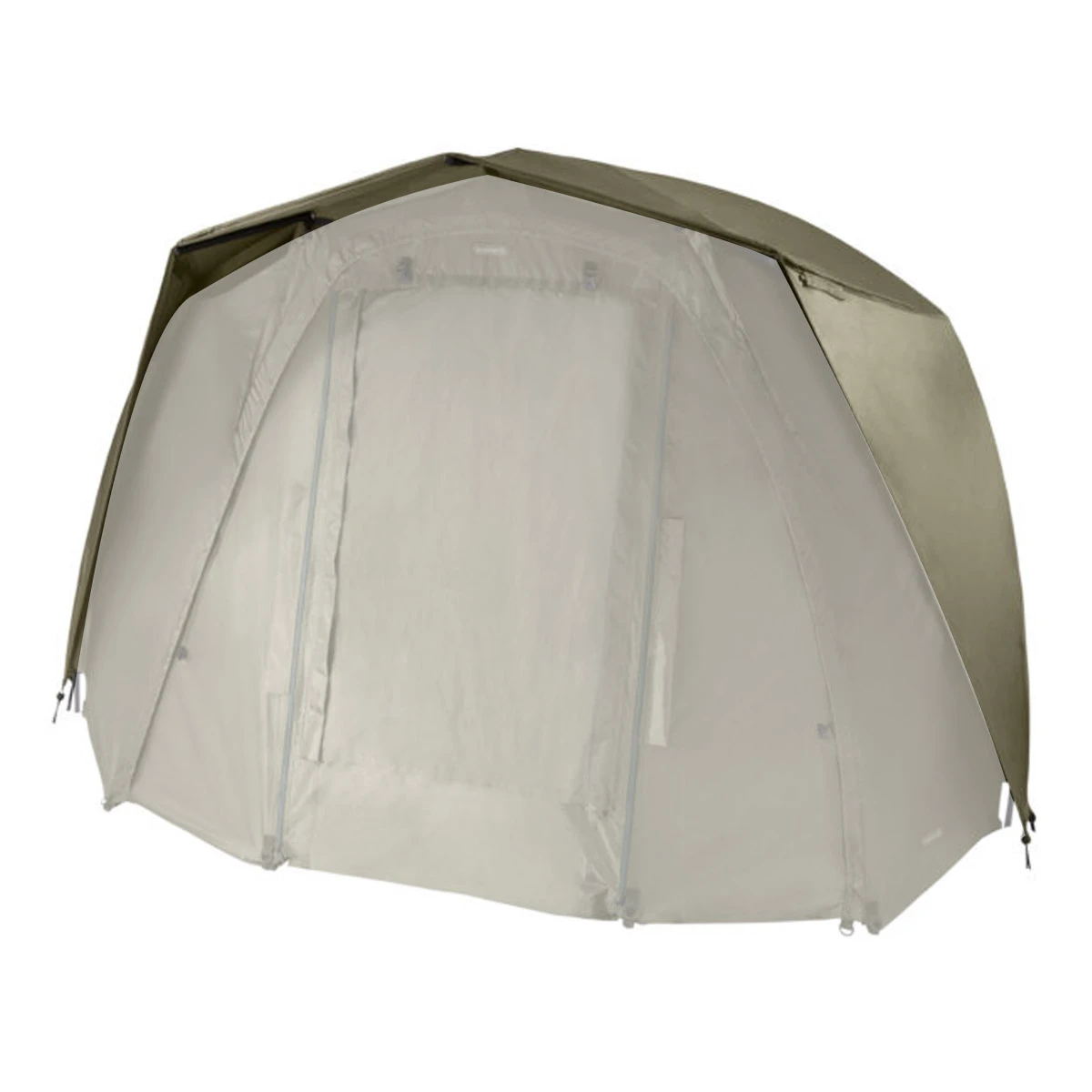 De verlengde zijkanten en achterkant bieden bovendien volledige dekking van de dubbele huid van boven tot onder. De Tempest Brolly 100T Skull Cap Wrap kan eenvoudig in enkele seconden worden gemonteerd via een spigot-systeem op de drie voorste palen en wordt vervolgens eenvoudig rond de bivvy vastgemaakt met de ventilatieopeningen aan de achterkant. Op deze manier kun je als het warmer wordt gemakkelijk weer lucht door je schuilplaats kunt laten stromen. Zo zorgt de Skull Cap Wrap ervoor dat het op warme dagen een stuk koeler blijft in je bivvy.